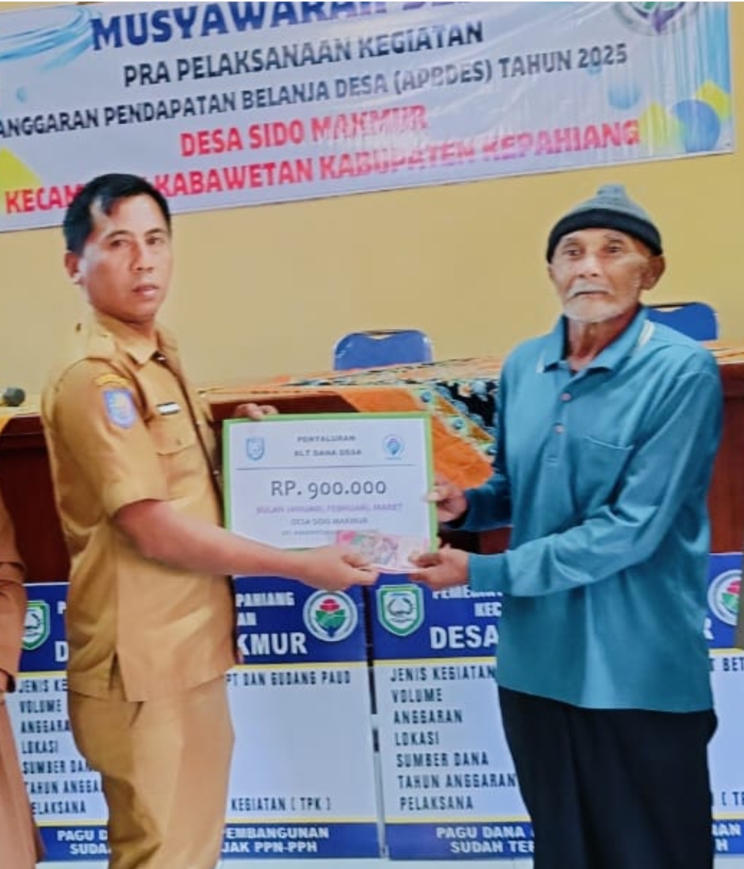 Kepahiang–cakrawalarafflesia.id – Pemerintah Desa desa Sido Makmur Kecamatan Kabawetan Kabupaten Kepahiang telah membagikan bantuan langsung tunai dana desa kepada 26 keluarga penerima manfaat tahap pertama bulan (Januari, Februari dan Maret) sebesar Rp 900 ribu rupiah telah diserahkan, kegiatan dilaksanakan diaula Kantor Desa Sido Makmur, pada Senin (24/3/2025).