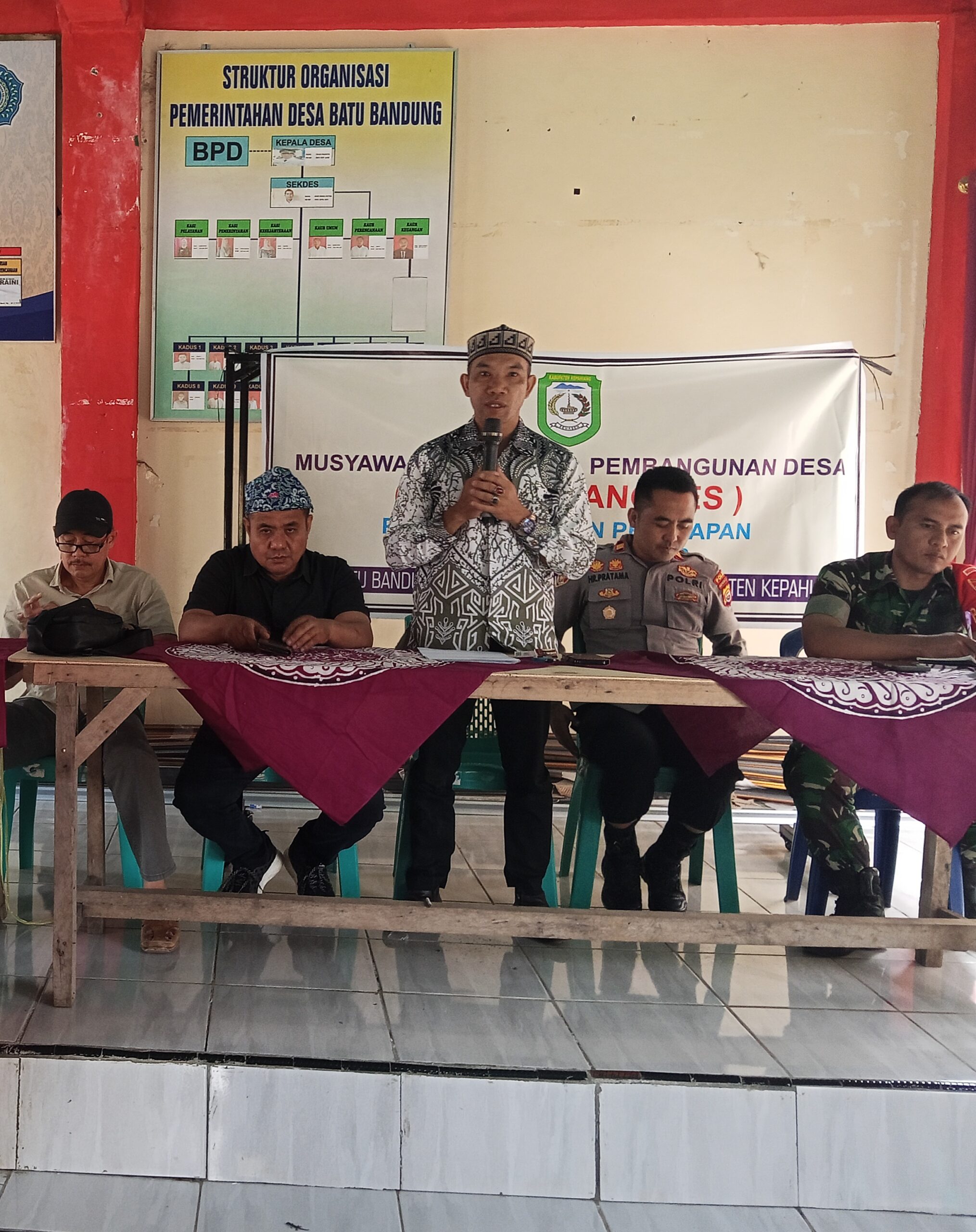Kegiatan Musdes Penetapan RKPDES desa Batu Bandung dibuka oleh kepala Desa Batu Bandung secara terang benderang mengajak seluruh perangkat dalam melaksanakan kegiatan harus berdasarkan peraturan yang berlaku dan Perangkat harus peka terhadap lingkungan.