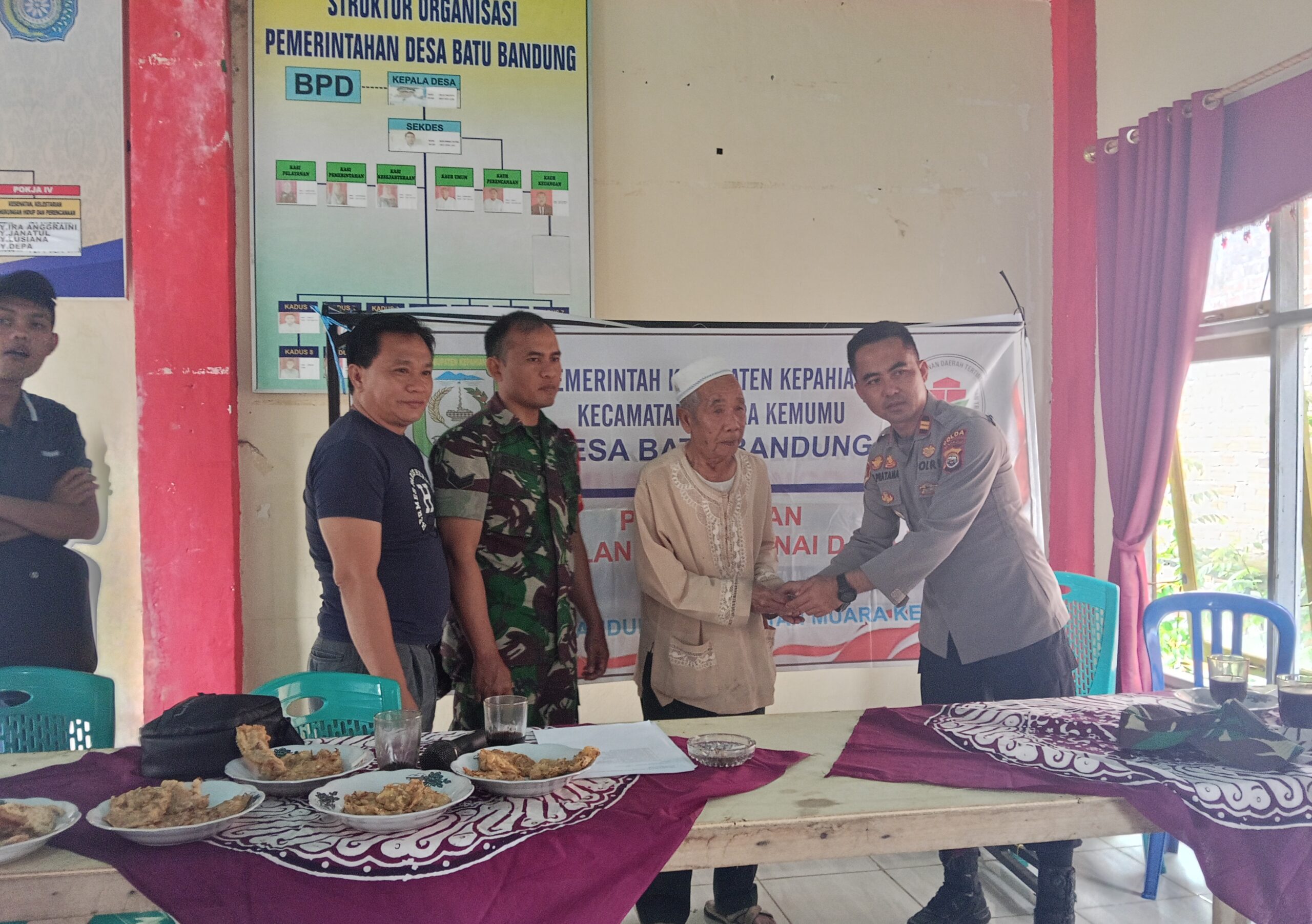 Hadir dalam pelaksanaan pembagian BLT-DD tersebut , Camat Muara Kemumu Bidul, S.Sos, Sekcam, Kapolsek Bermani Ilir Iptu Pratama, Kades Iwan Pradesa,Babinsa, Tenaga Ahli, Pendamping Kecamatan, Ketua BPD beserta anggota, Perangkat Desa Batu Bandung, tokoh masyarakat, tokoh agama, warga masyarakat dan tamu undangan.